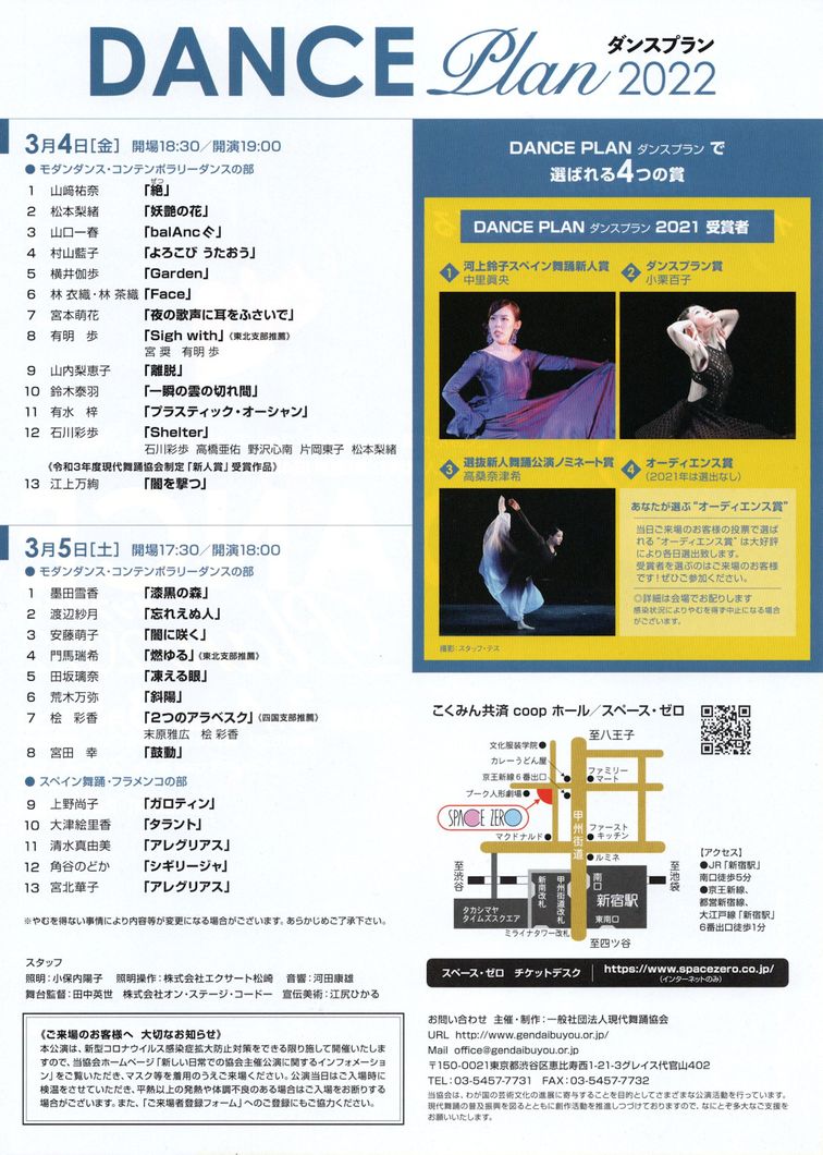 DANCE Plan 2022 2022年3月4日(金)・5日(土) こくみん共済coopホール/スペース・ゼロ 開演 3月4日 19:00 / 3月5日 18:00(開場各30分前) 全指定席 2,800円(税込)